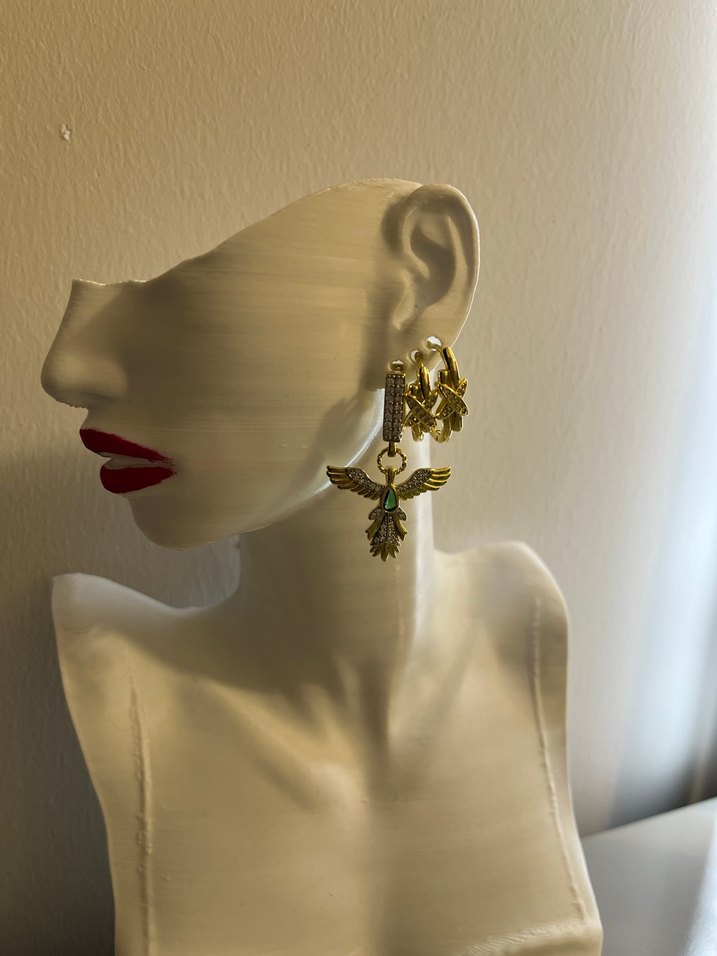 Parlak altın renkli, mini boyda, pullu ve etnik desenli küpeler. Cesur ve bohem tarz için günlük kullanıma uygundur. ✨