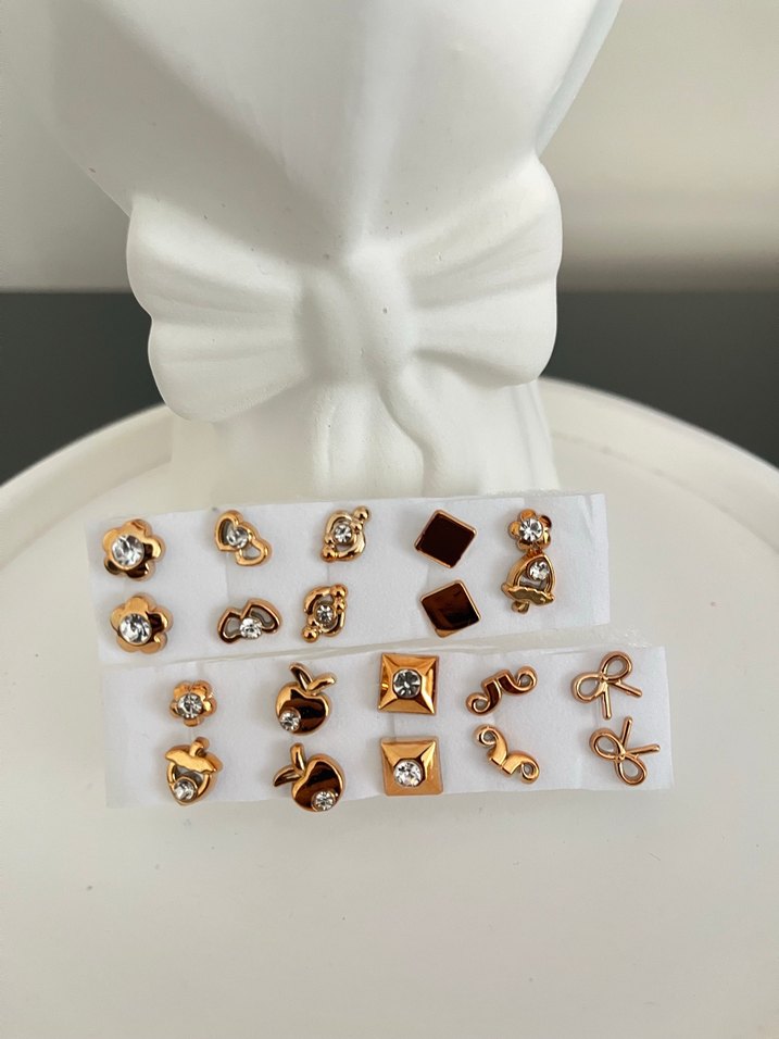Altın Renkli Mini Sekizli Küpe Seti