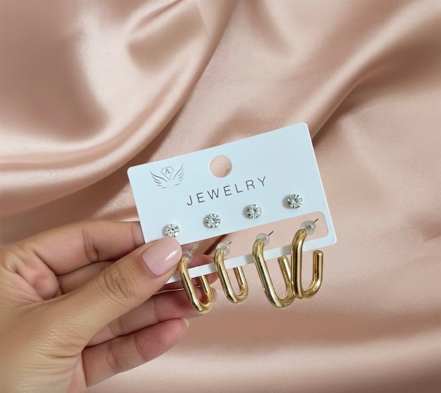 Altın renkli, mini uzunlukta ve pul detaylı minimalist küpe seti, günlük kullanıma uygun şık tasarım. ✨