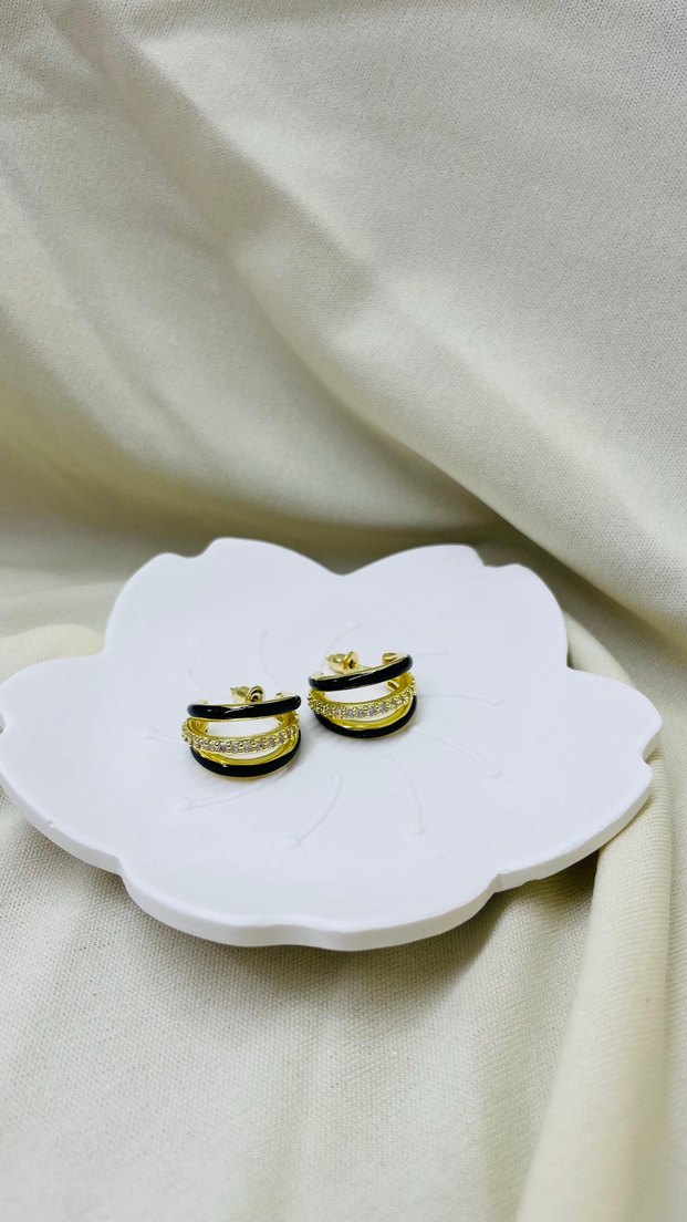 Altın renkli, kısa uzunlukta, sıralı taş ve nakış detaylı minimalist modern küpeler, klasik şıklık için uygun. ✨