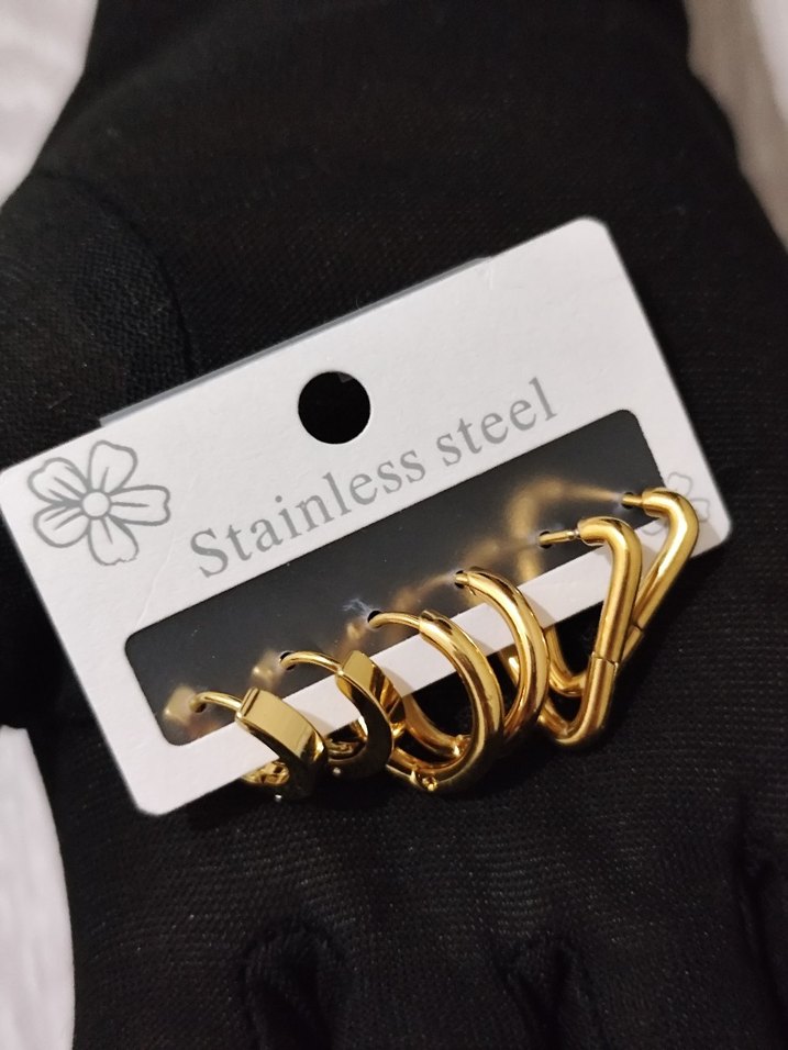 Paslanmaz çelikten, parlak altın renkli mini tokalı kadın küpeler seti, günlük sokak tarzı için minimal ve sade.