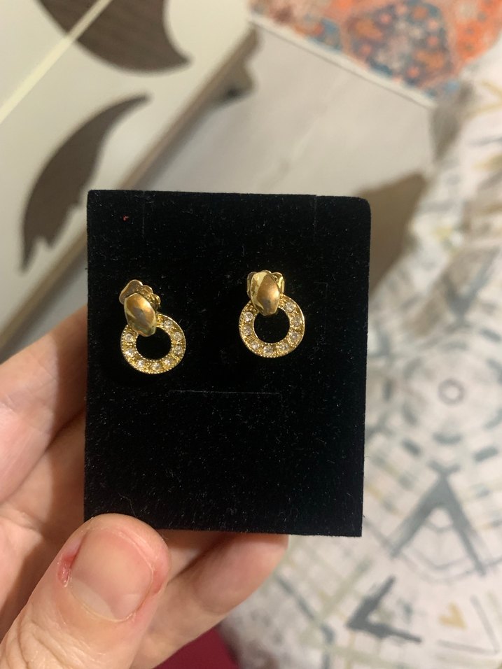 Parlak altın renkli, mini tokalı halka tasarımlı küpeler, romantik akşamlar için modern klasik tarzda.