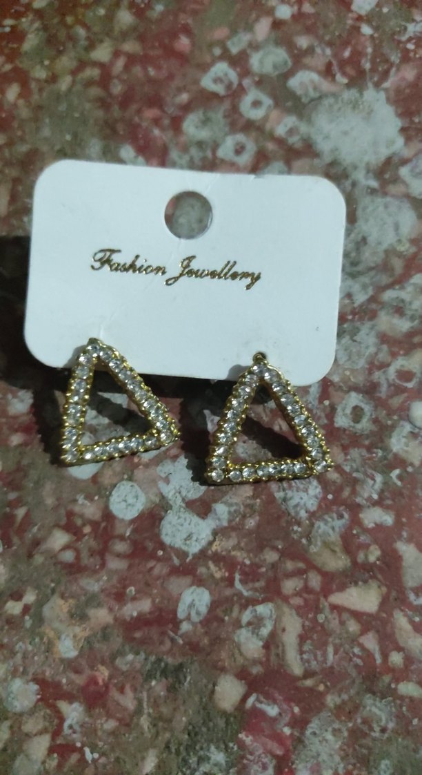 Altın renkli, mini üçgen şeklinde, payet detaylı küpeler. Parlak ve bohem tarzıyla düğünler ve günlük şıklık için uygun. ✨ YENİ TEMİZ ÜRÜN
