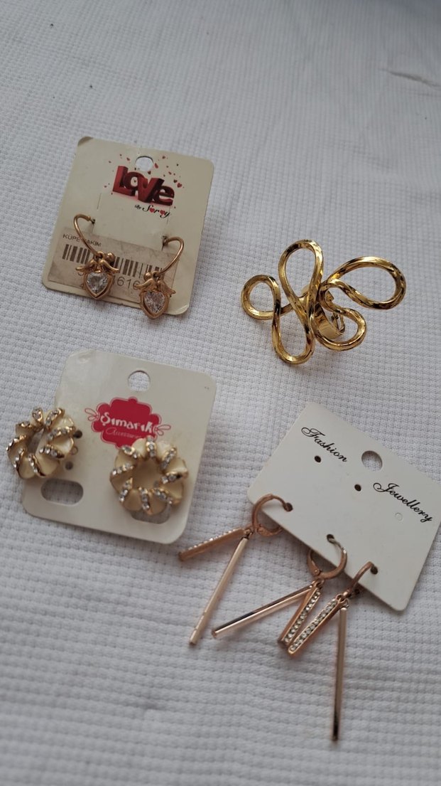 Düğünlere uygun, payetli ve baskılı vintage bohem tarzda altın renkli kısa uzunlukta küpe seti. Farklı tasarımlarla zarif detaylar içerir. ✨