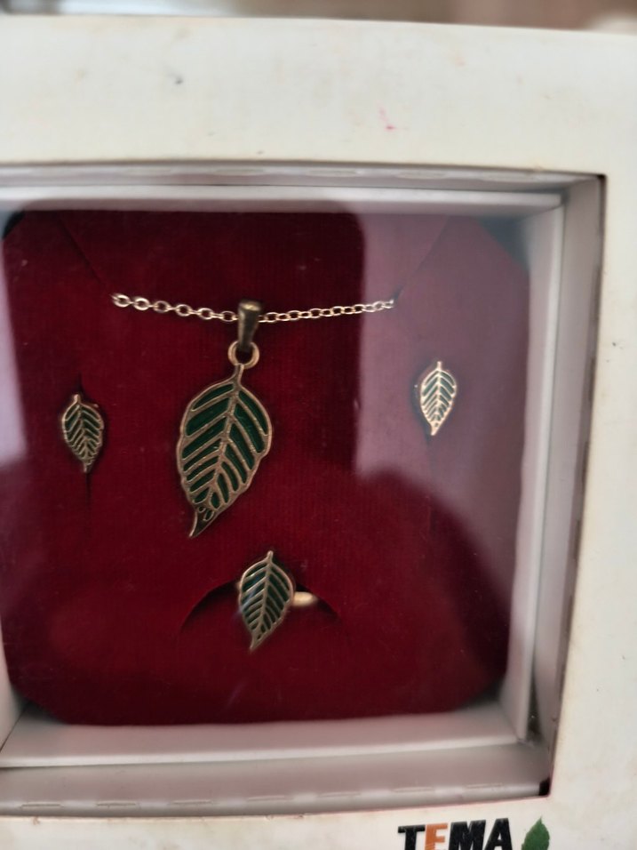 Altın Renkli Mini Yaprak Desenli Zincirli set takım