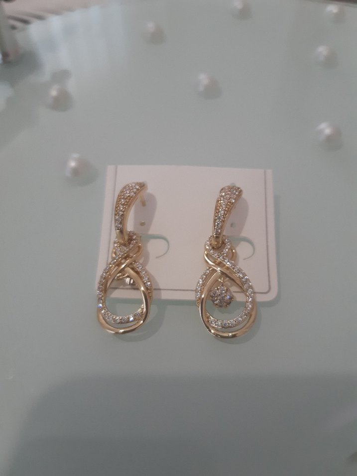 Altın renkli, parlak yılan desenli ve payet detaylı mini küpeler, düğün ve klasik zarafet için uygun. ✨