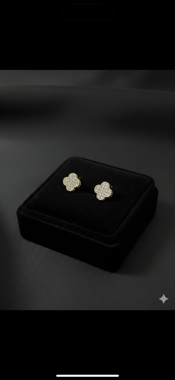 Altın Renkli Mini Yonca Küpe