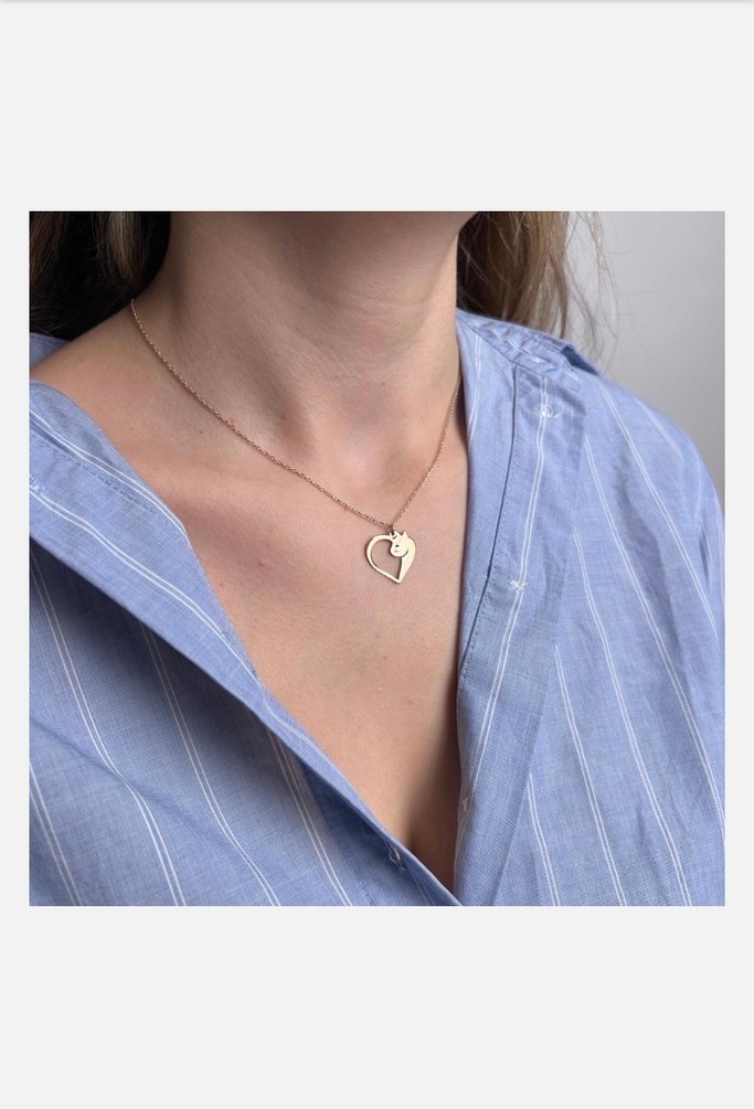 Altın renginde kısa uzunlukta, zincir detaylı ve baskılı kalp figürlü minimalist kolye, günlük sokak stiline uyum sağlar.