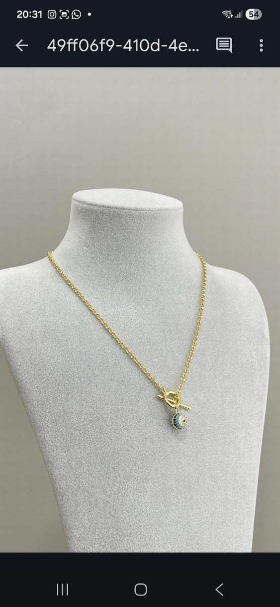 Kısa uzunlukta, zincir detaylı altın renkli kolye, yılan desenli küçük bir uçla günlük kullanıma uygundur.