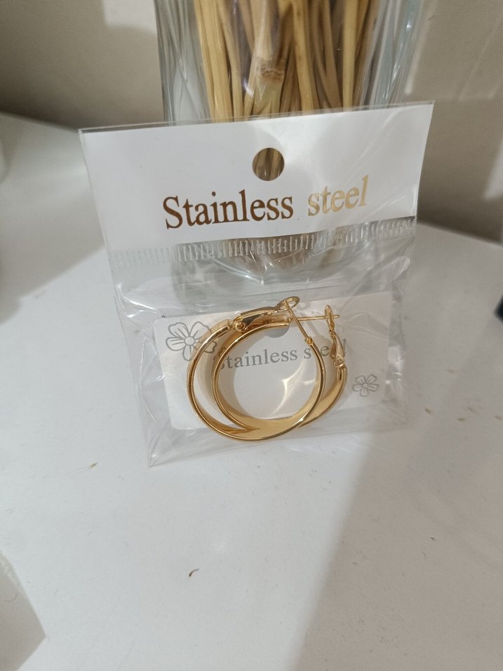 Altın renkli paslanmaz çelik küpeler, minimalist bohem tarzda parlak yüzeye ve elastik detaya sahiptir, günlük kullanıma uygundur. ✨