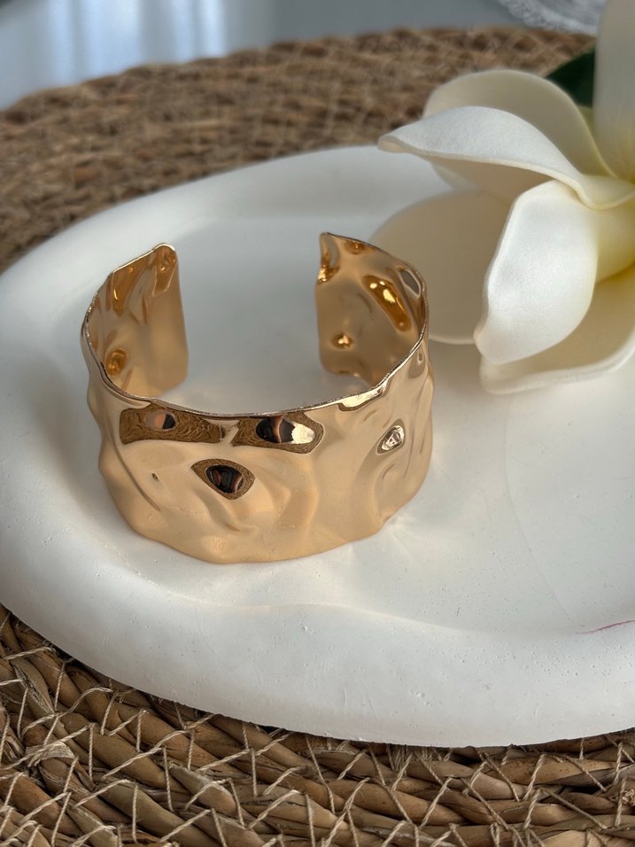 Parlak altın renkli,modern ve minimalist tarzda kadın bileklik. Günlük kullanıma uygun şık tasarım. ✨