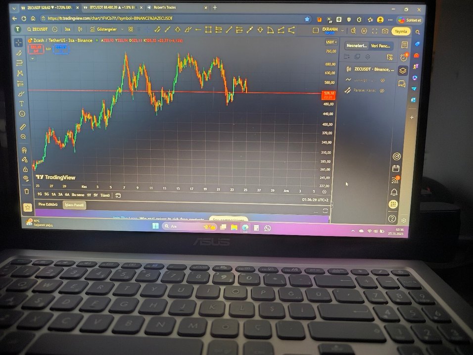 Altın renkli monitörde finansal grafikler ve veriler gösterilmektedir. Ekranda 'DOIRINANCENTAZECUSO' yazısı yer alır.