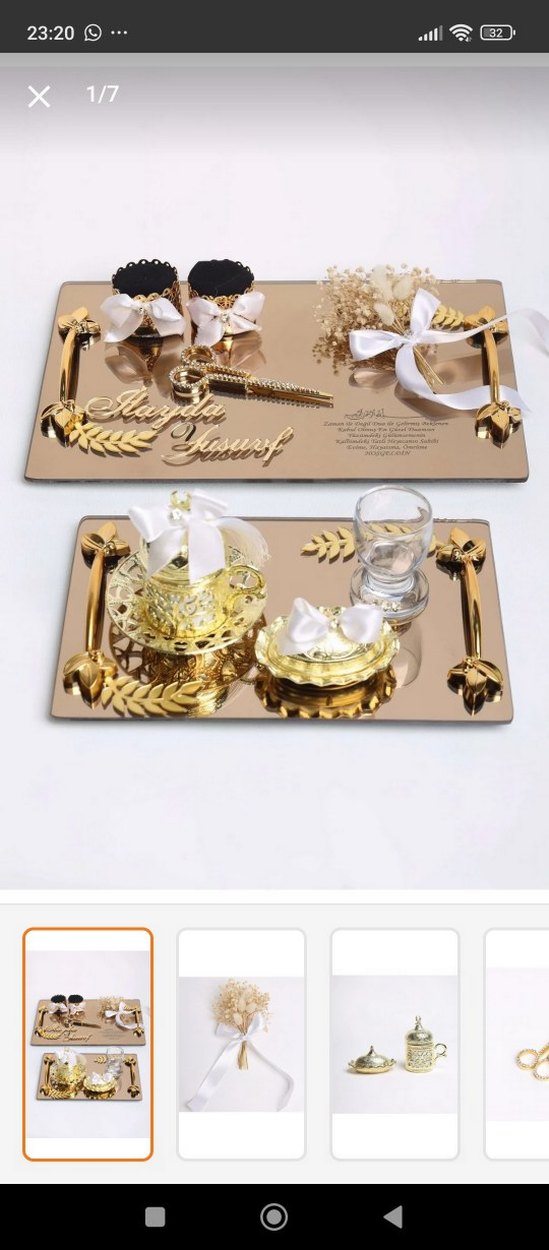 Nakışlı desenlere sahip altın renkli, klasik tarzda tepsi ve aksesuarlar içeren söz tepsisi ✨