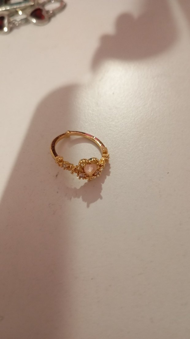 Altın renkli, pul işlemeli ve kalp detaylı bohem tarzda kadın yüzüğü. Klasik zarafeti yansıtarak düğünler için uygundur.