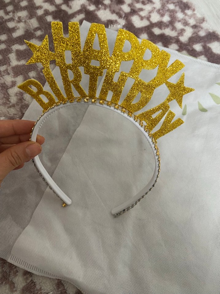 Altın Renkli Parıltılı Doğum Günü Taçlı Saç Bandı