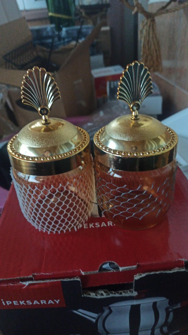 Altın Renkli Parlak Cam Saklama Kavanozları