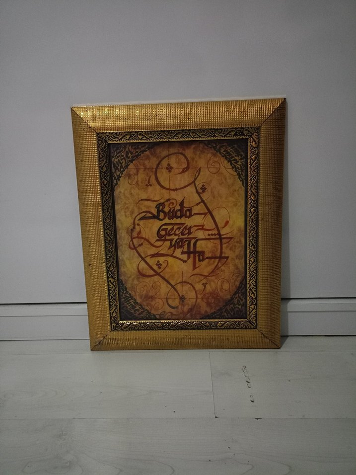 Parlak altın renkli çerçevesi ve üzerinde "Bada" yazısı bulunan dekoratif tablo.