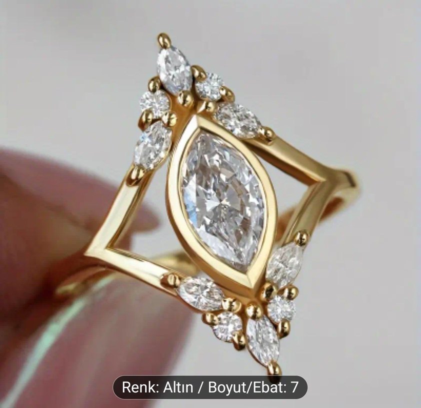 7 numara altın renkli, parlak payetli desenli kadın yüzük, 7 numara. Düğünler için modern klasik tarzda tasarlanmıştır. kargo aliciya aittir.