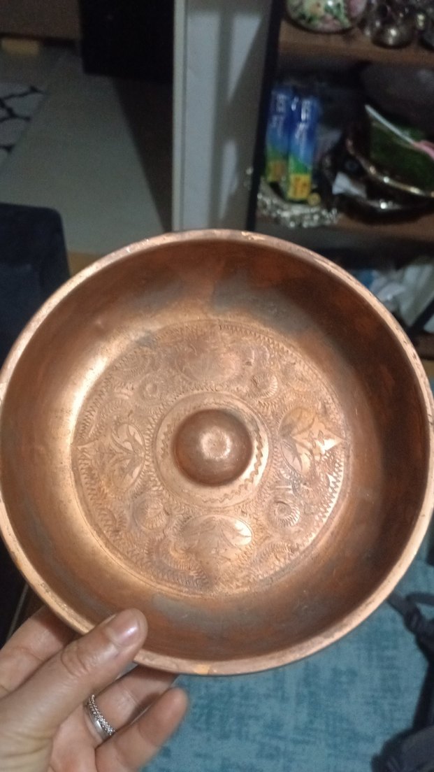 Ortası kabartmalı detaylı, parlak altın renkli geleneksel tabak. Dış yüzeyi düz ve desensizdir. ️