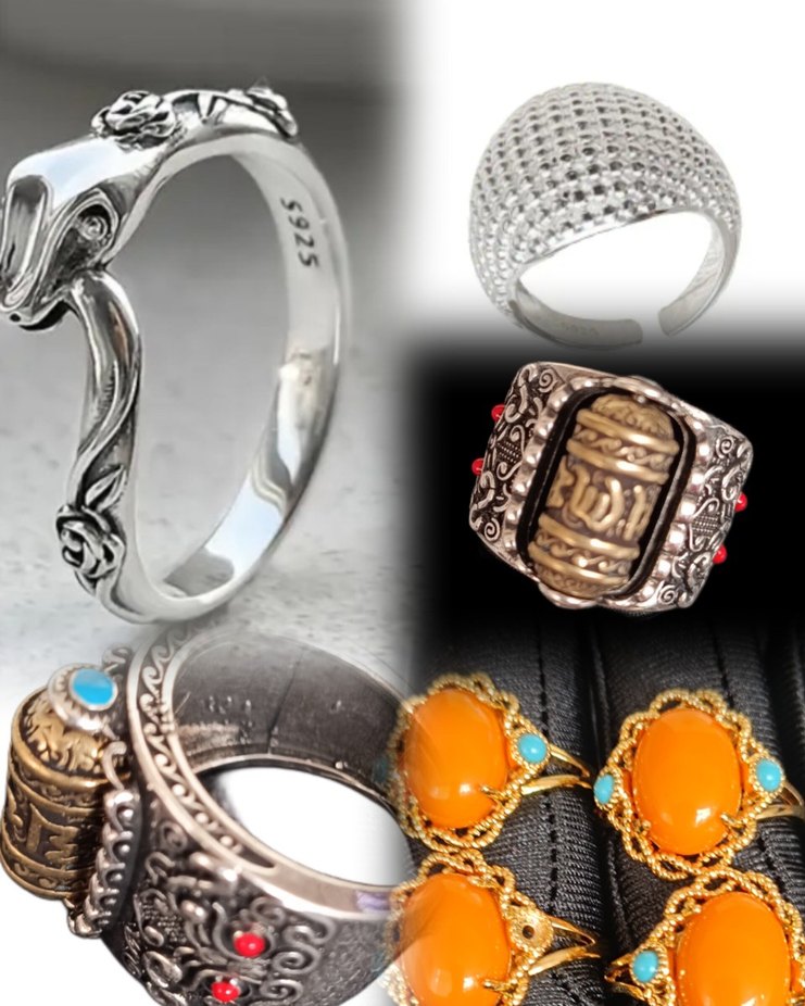 Altın renginde, pul işlemeli güneş figürlü yüzükler. Bohem ve göz alıcı tarzda, normal midi her parmağa uyumlu ayarlanabilir.ve renkli işlemeli desenlere sahip. ✨