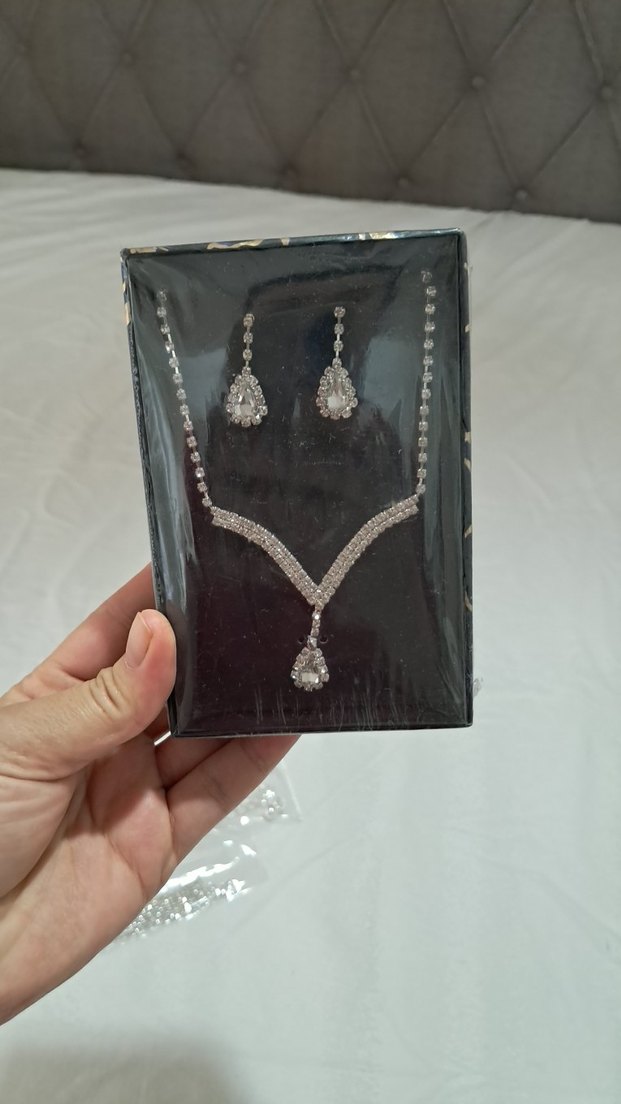 Altın renginde, payetli detaylara sahip kadın takı seti. Kolye ve uyumlu küpeler içerir, düğünler için modern klasik tarzda. ✨