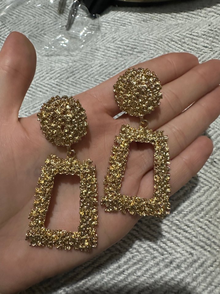Altın renkli, parlak payetli desenli midi küpeler. Glamorous ve avant-garde tarzına uygun, romantik akşamlar için ideal. ✨