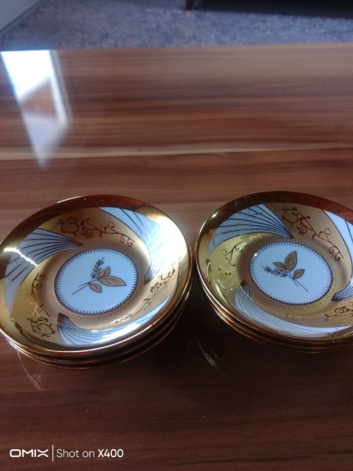 Altın Renkli Parlak Porselen Çay Tabağı Seti sıfır