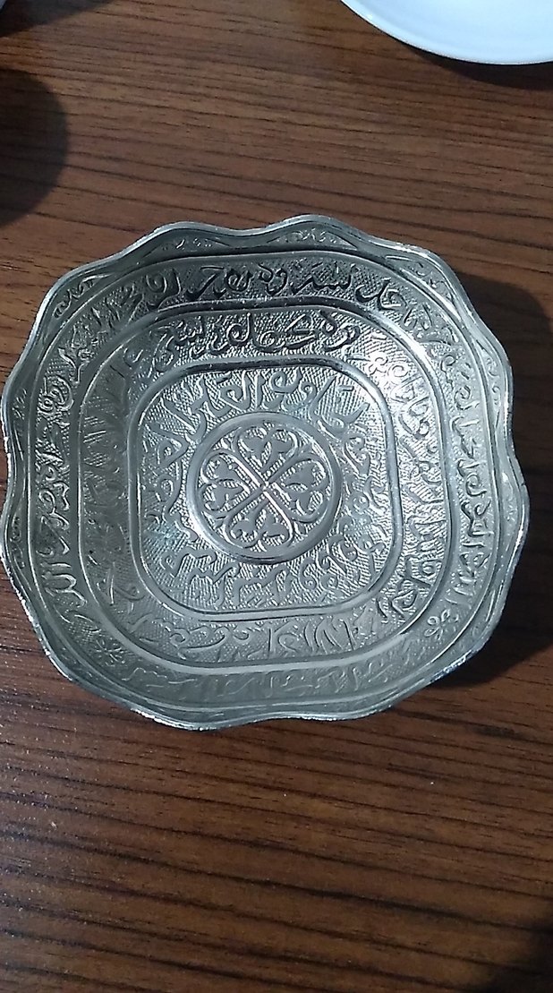 Parlak altın renkli tabak, kenarlarında oyma desenlerle geleneksel bir tasarıma sahiptir. Düz ve yansıtıcı yüzeye sahiptir.✨