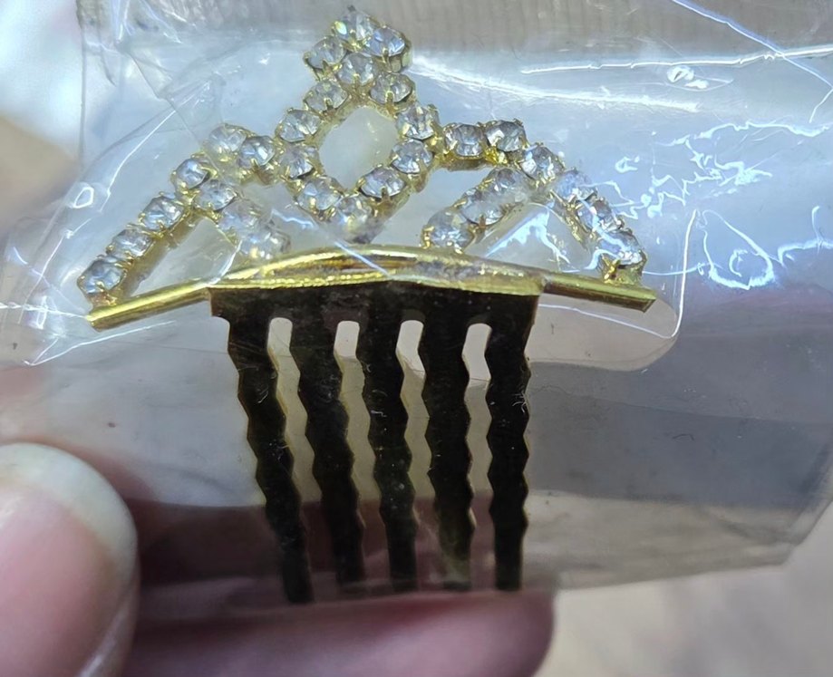 Altın renkli, parlak taşlarla süslenmiş saç tokası, gösterişli ve klasik bir stile sahiptir. ✨kiz cocuklar icin