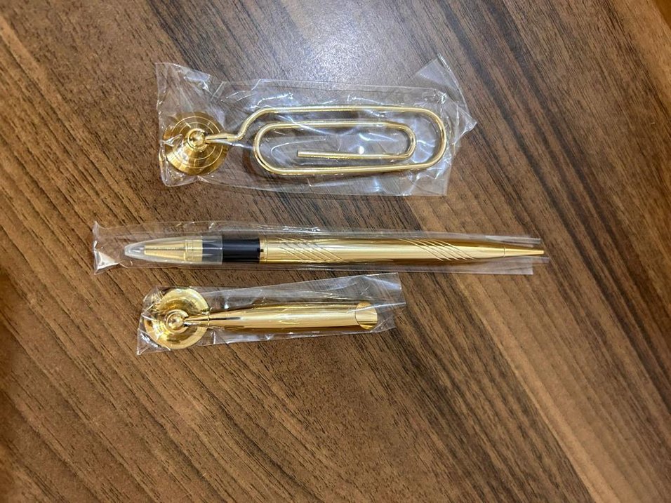 Altın Renkli Parlak Tükenmez Kalem ve Ataş Seti dümen kalem
