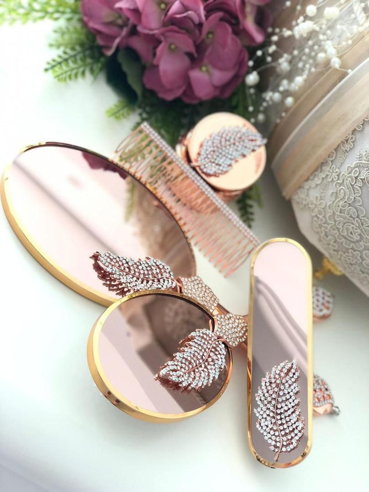 Altın renginde, cam malzemeden yapılmış, pul işlemeli tüy detaylı saç aksesuarları. Parlak ve çağdaş tasarım sunar. ✨