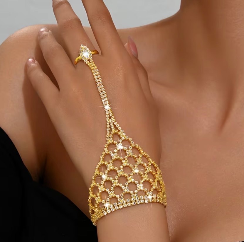 Düğünler için bohem tarzda, parlak pullu ve yılan desenli altın renkli kadın el zinciri. ✨ Modaya Uygun, Zarif ve Seksi, Bakır ve Rhinestone Detaylı, Kadınlar İçin Benzersiz Izgara Bileklik, Şık Sarma Tasarımı, Parmaksız Giyim İçin Uygun, Balo ve Parti Aksesuarları İçin Mükemmel.