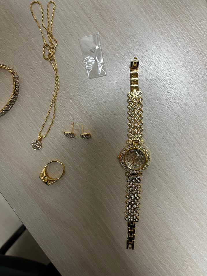 Altın Renkli Payetli Kadın Saati ve kolye takım
