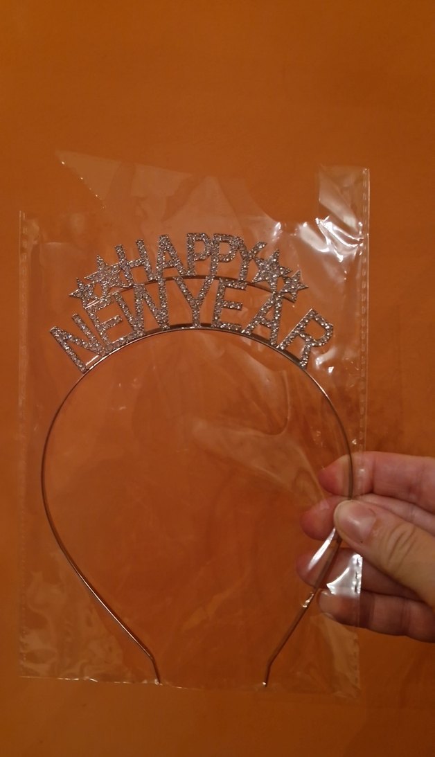 Metal yapılmış, payetlerle süslenmiş 'Happy New Year' yazılı, gösterişli ve karşı kültür tarzında saç aksesuarı. ✨
