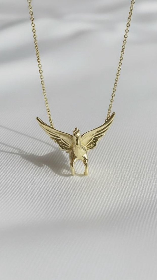 Altın renginde, zincir detaylı kadın kolye. Parlak, minimal kanat figürlü kolye, normal midi boyda ve günlük kullanıma uygun. ✨