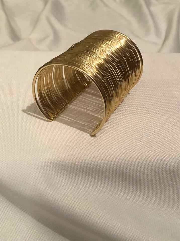 Parlak altın renkli, pilili tasarıma sahip, çağdaş ve minimalist stil bileklik. Düğünler için uygun. ✨