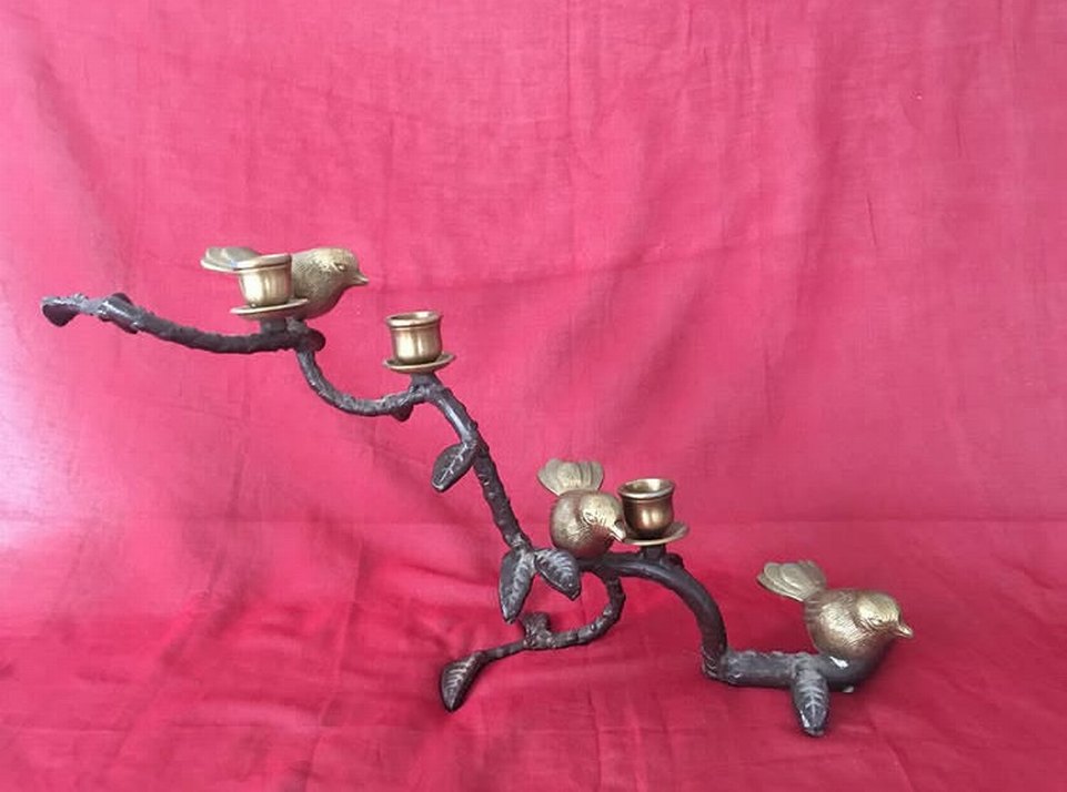 Kuş ve yaprak detaylı koyu renkli, altın renginde çoklu mumluk. Her mekana dekoratif bir dokunuş katar. 40 cm Ağır pirinçtir #vintage #antika