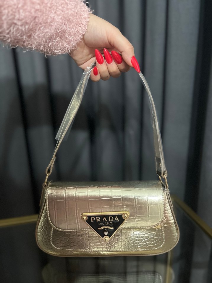 Altın Renkli Prada Deri Kadın Çanta