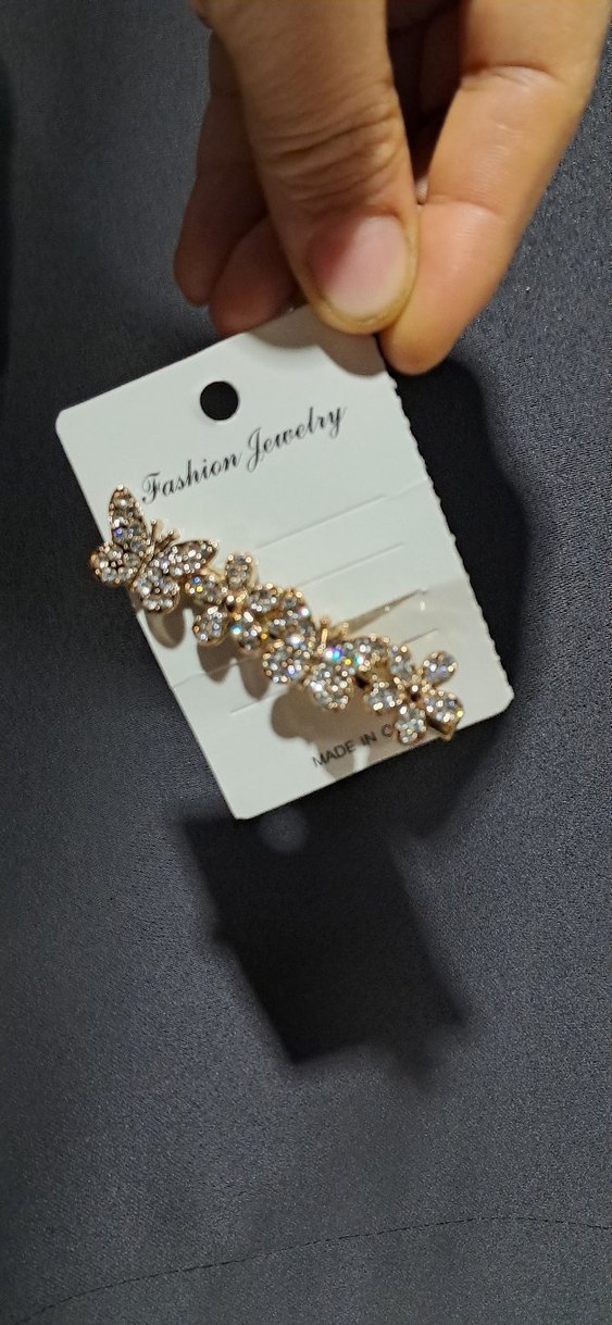 Altın renkli, pul işlemeli çiçek kelebek desenli. Düğün ve günlük şık kombinlere uygun modern tasarım. ✨