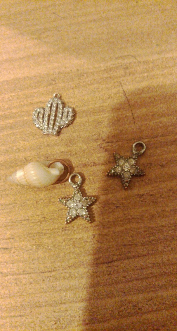 Altın renkli, püsküllü yıldız ve deniz kabuğu figürlü bohem tarzda vintage plaj için uygun charm seti. ✨
