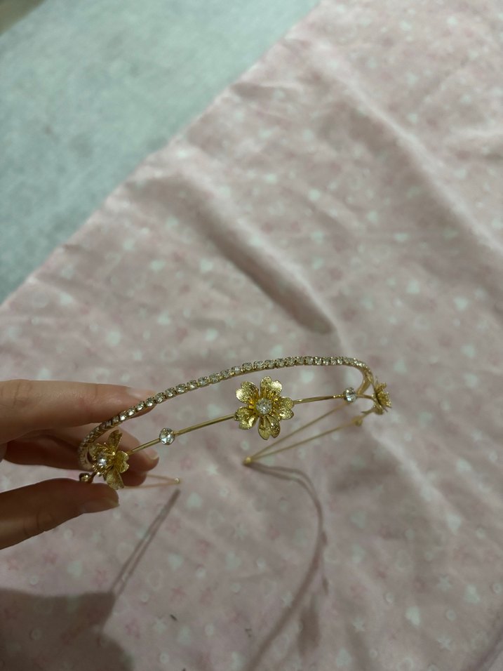 Altın renkli, pul işlemeli çiçek detaylı, hafif plastikten yapılmış minimalist bohem tarzda saç aksesuarı. Retro ve hippie havası katar. ✨