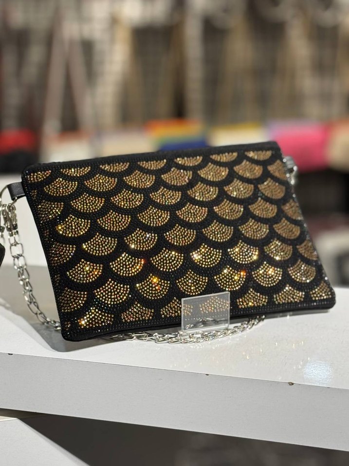 Kadınlar için altın yılan desenli pullu koyu deri portföy çanta, gümüş zincir askılı. Günlük kullanıma uygun, çağdaş ve modaya uygun bir tasarım. ✨