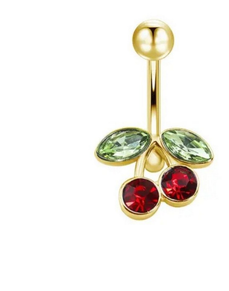 Altın Renkli Renkli Taşlı Göbek Piercingi