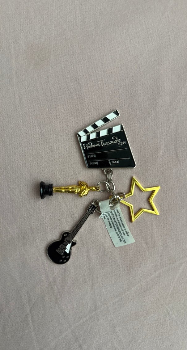 Parlak altın renkli, film klaketi madame toussaous mıknatıslı ,yıldız, gitar ve ödül figürlü rock punk ve pop kültür tarzında anahtarlık.