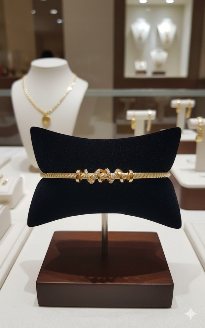 Altın Renkli Şık Desenli Kordonlu Bileklik
