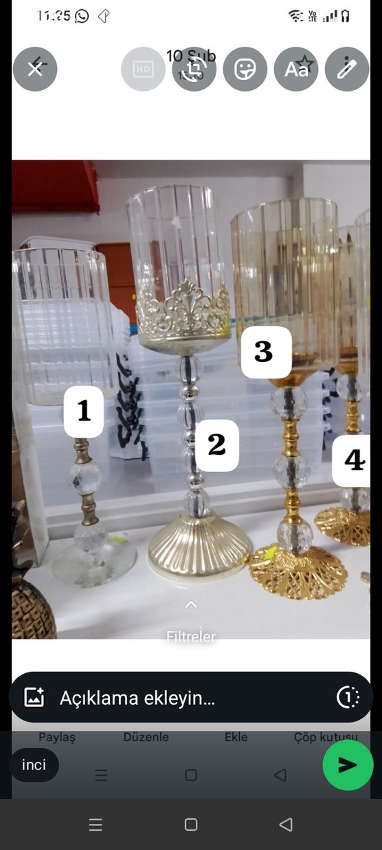 Şık detaylara sahip, altın renginde taban ve şeffaf cam üst kısmı olan dekoratif mumluk seti. Uzun ve zarif tasarım içerir. ️yüksek lik 40 cm adet fiyat