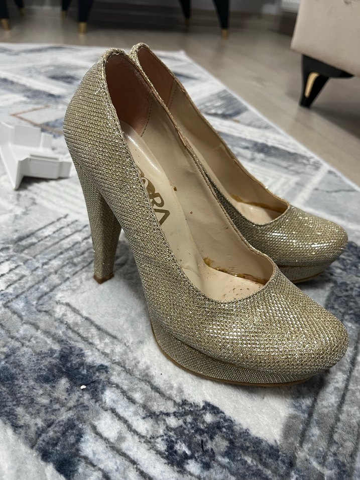 Altın Renkli Simli Yüksek Topuklu Kadın Ayakkabı