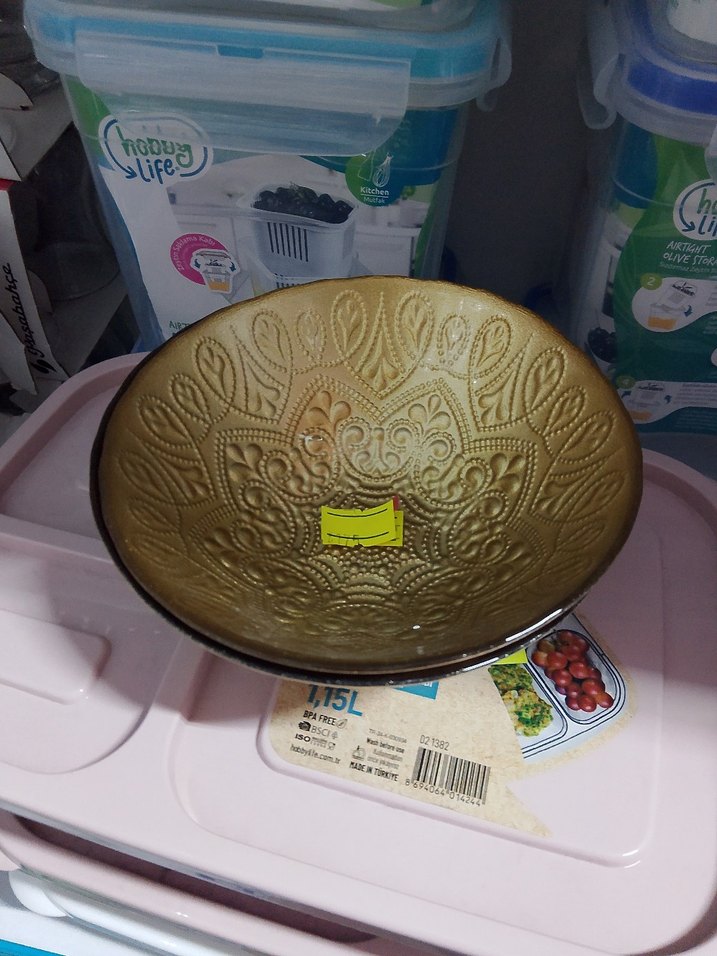 Parlak altın renginde, soyut kabartmalı desene sahip dekoratif tabak. ✨adet fiyat