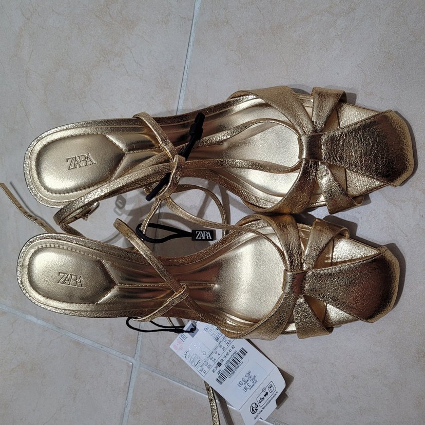Altın Renkli Stiletto Topuklu Kadın Sandalet Zara marka .