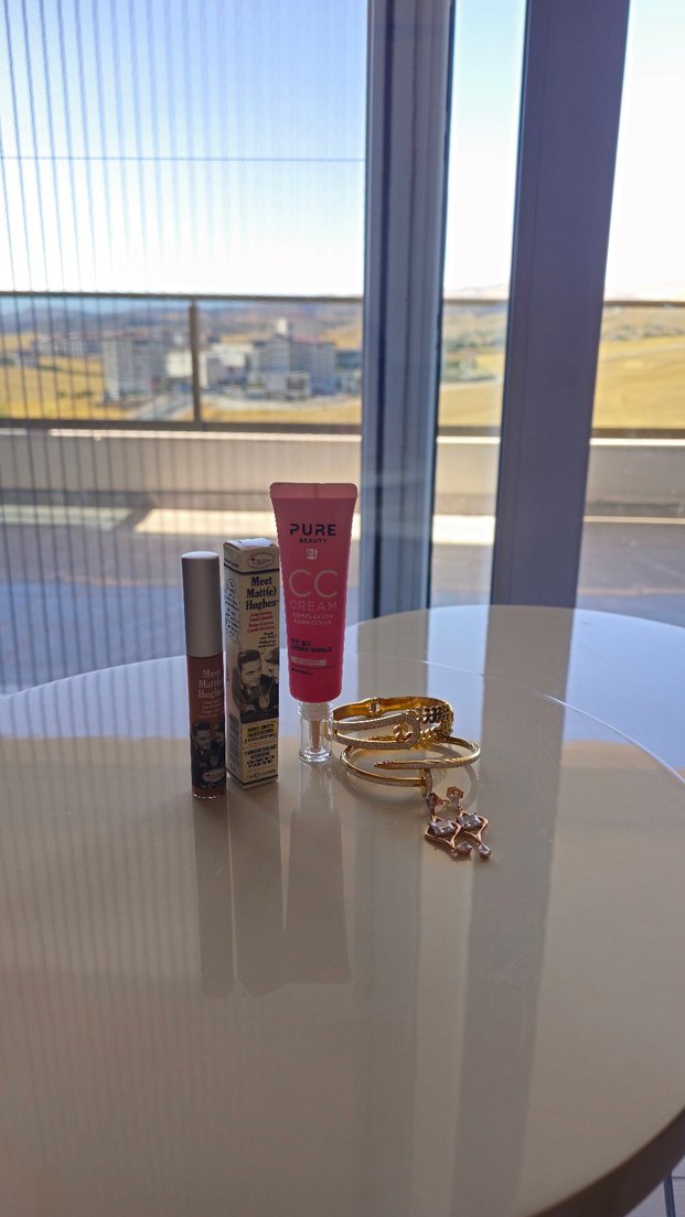 Pure Beauty cream 01 Ivory /The balm Meet Matte Hughes Humble ve Loyal ruj / Ve birkaç takılarım çelik ve kararma yapmaz bir kere kullanıldı sadece. Rujlarımı hiç kullanmadım sadece bir ürünün kutusu yok merak edip baktığım için. Ayrıca Gratisten aldım. Cc kremi de bir kere kullandım watsonstan aldım. Alacak kişi şimdiden sağlıkla kullansın.